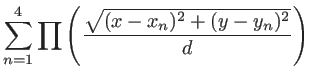 Quatre trous identiques situés en (xn,yn) |